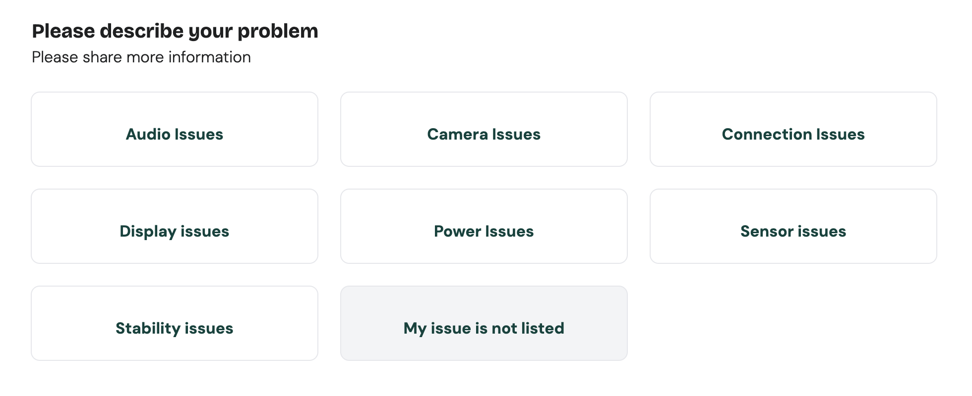 FYI @janweiss @Meaghan @yvmuell the “My issue is not listed” option is now live on the Self-Repair Portal: ![]()