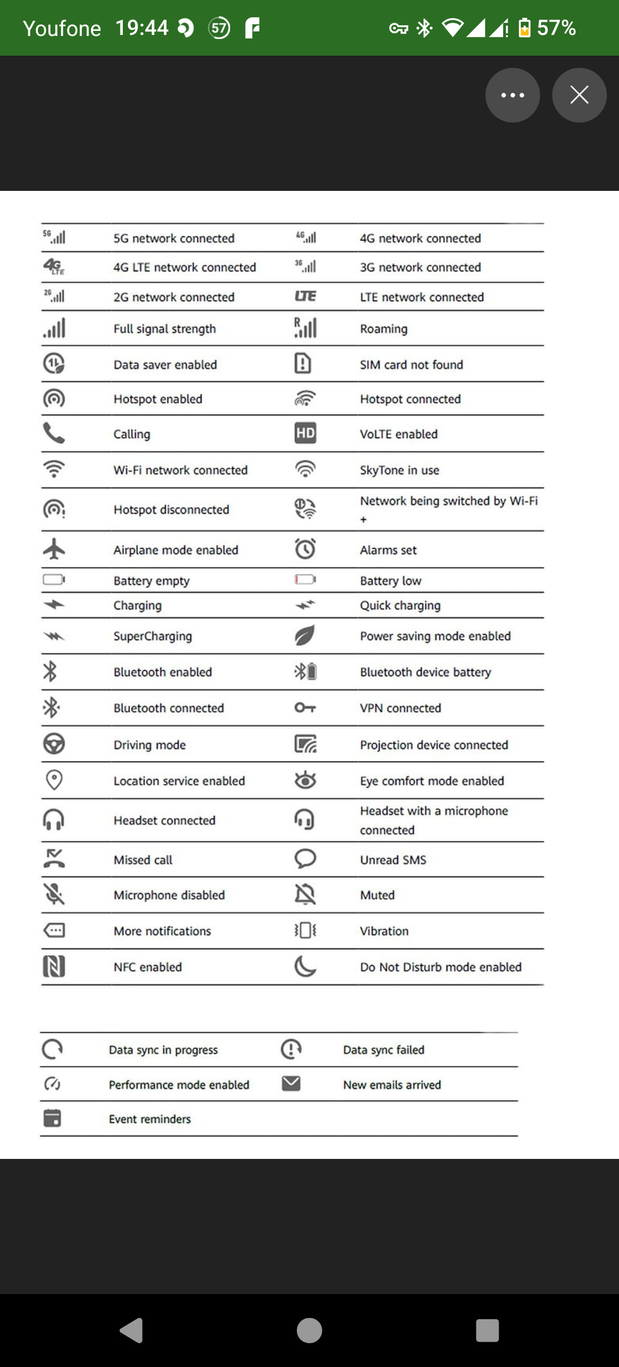 Had been wondering what those symbols at the top of the screen were! Is there a list of them anywhere? What, in fact, is the name for the App “icons?” on the front screen and are those thingys at the top “widgets”?