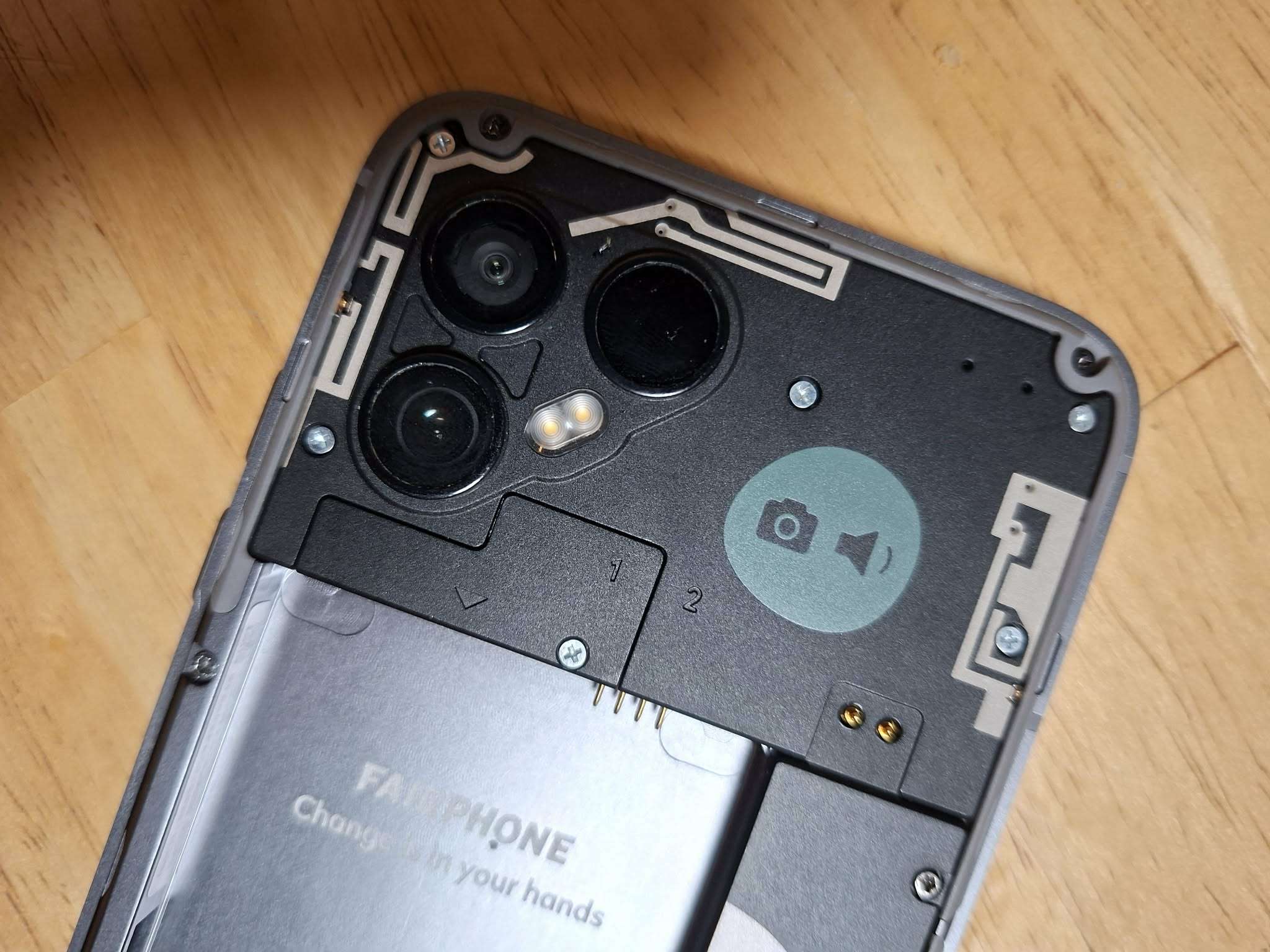 -marked core module cover – in @Meaghan’s picture, they seem to be silver, in my FP4 here these are black. Perhaps in the assembly of your device, someone mixed up these with the Phillips ones.