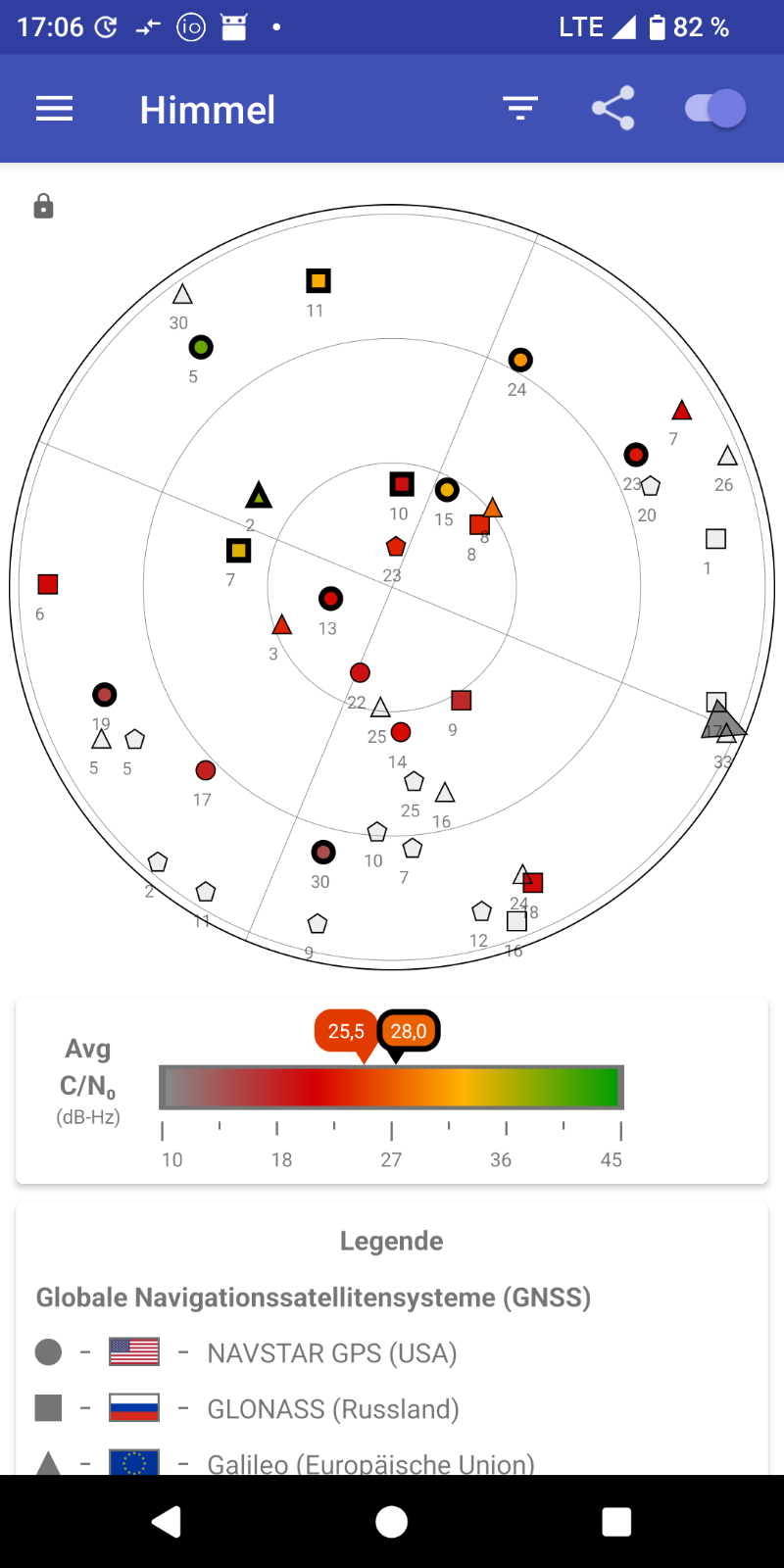 Bei der Ortung mit GPS hingegen erkennt mein Handy fast 30 Satelliten und “sieht” ca die Hälfte davon (in der Wohnung). 8 erscheint mir sehr wenig, ich glaube da stimmt tatsächlich etwas nicht.