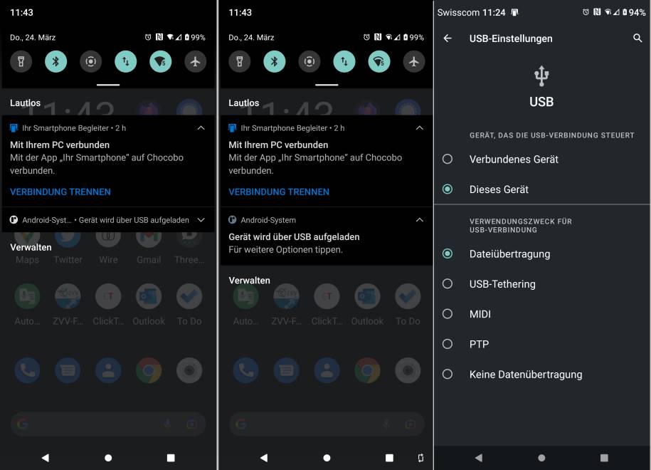 If you don’t see the “Android-System Gerät wird über USB aufgeladen” (I’m using German language), I could imagine two things
