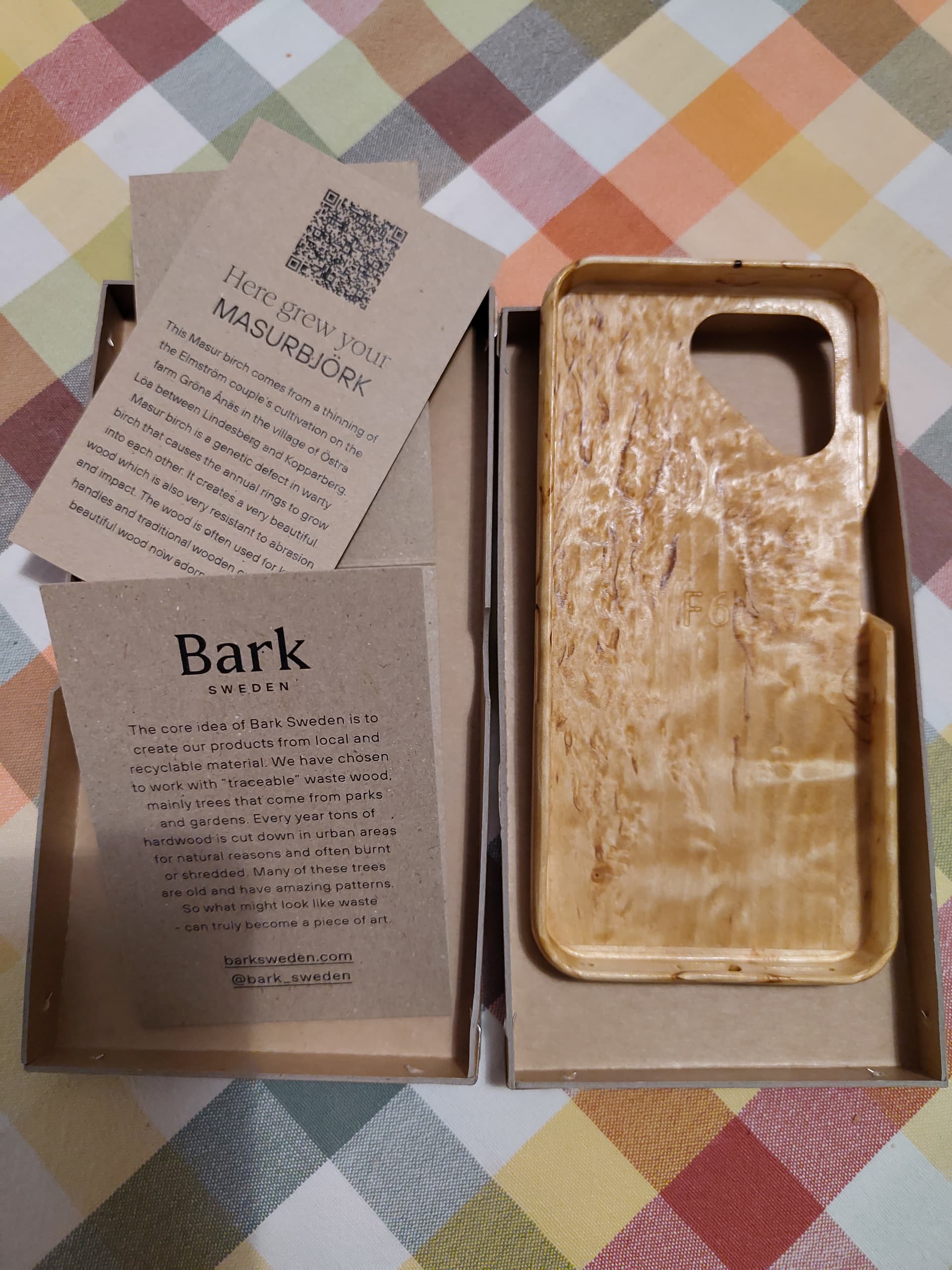 I’ve just received my Bark Sweden wooden case, it’s the second one, as I got one for my FP5 too. This time I bought the Masur birch, with reinforced corners.