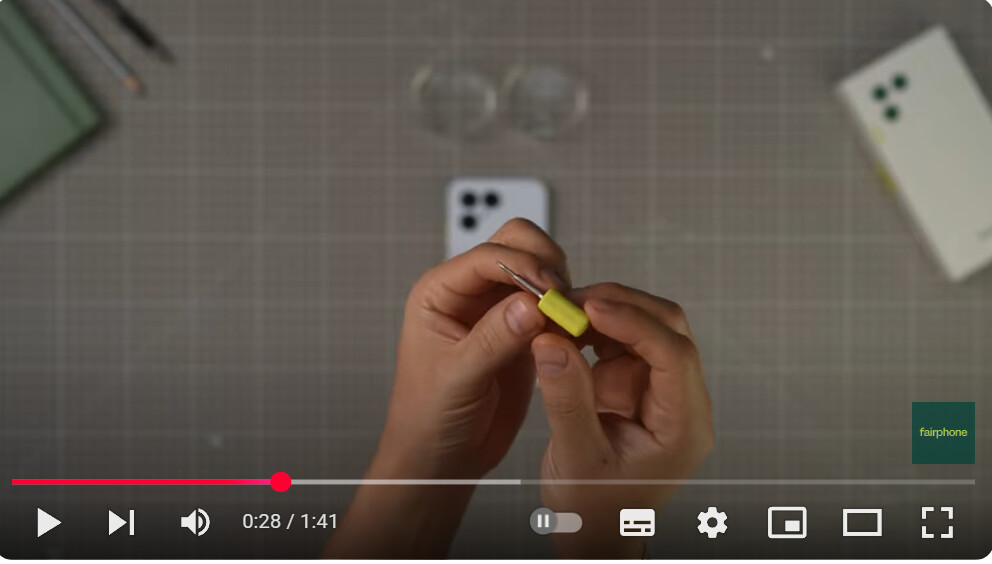 The tutorial clips for spare parts for FP6 include a big Ifixit screwdriver, the tutorial clips for accessories include a small yellow one.