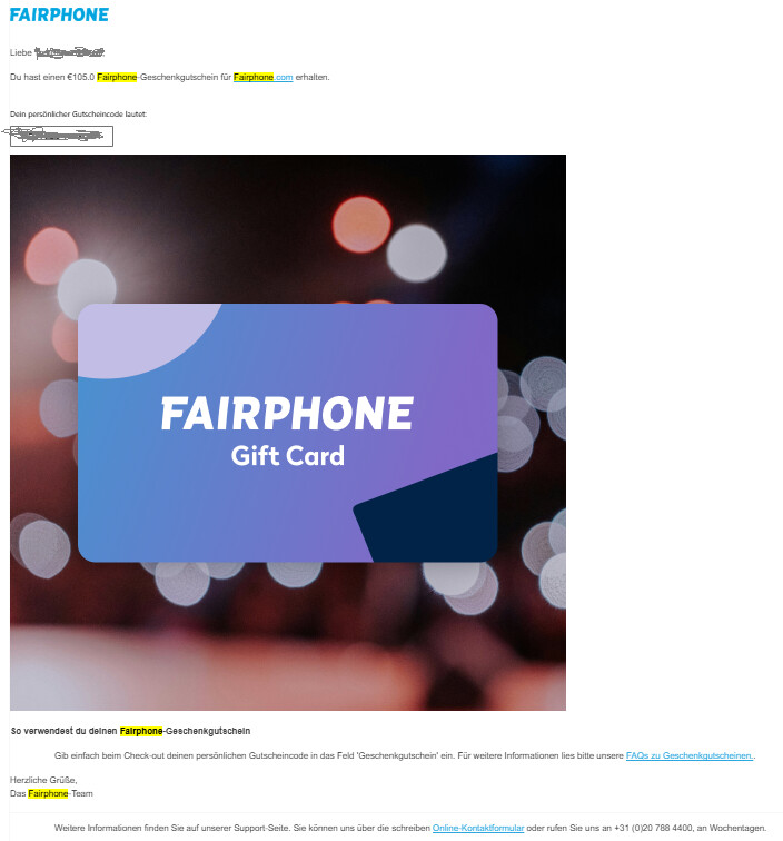 I am selling a FairPhone gift card worth 105€. I got it returning a broken Fairphone, but I do not need it and would rather have cash instead.