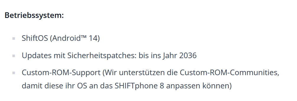 12 GB RAM und 512 GB interner Speicher klingen jetzt nicht so, als würden Minimal-Anforderungen der Android-Version von 2032 (also die Version, die in ca. 6 Jahren released wird und dann mit 3,5 Jahren Support bis in 2036 reinreichen wird; Android 23 wenn ich mich nicht verzählt habe beim nochmaligen Ausrechnen) genau daran scheitern. Ich kann mir halt nicht vorstellen, dass auf dem ganzen Weg bis dorthin, nicht irgendwas verloren geht. Dann wurde vielleicht auf dem Papier der Support bis 2036 grundsätzlich eingehalten, aber nur mit heute schwer abschätzbaren Einschränkungen. Oder vielleicht mit einer Rückstufung auf Android One.