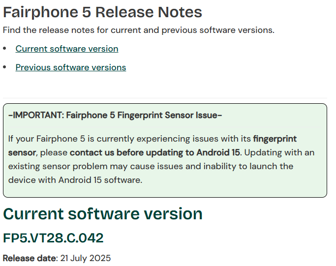 That’s no even near enough. Almost no one checks their site before update. As another user suggested, they should have stopped the update imemdiately or advise all the fairphone 5 owner of the issue (that could present even after updating if you break the sensor). of course, they are worried about bad publicity, but this means we as users have to pay for that. I updated on 4 august, phone bricked, 12 days waiting, replies arrived yesterday. “With this message we want to assure you that your request has been received, and we are doing our best to get back to you as soon as possible.” Very disappointing. I used to sponsor fairphone, i’m not doing it again until they solve this issue and start to pay attention to their customers.
