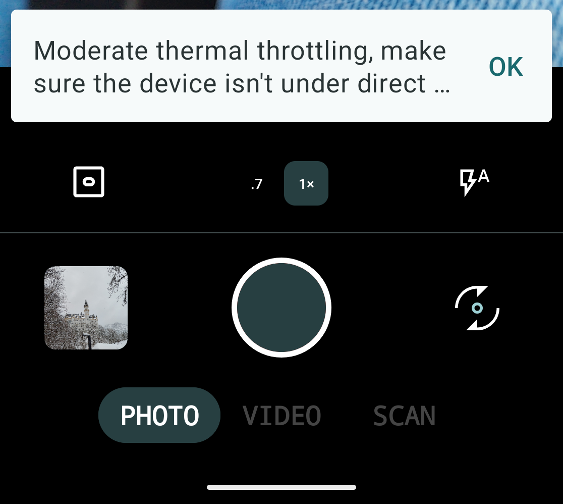 After I played with different gcam mods and none was really satisfactory I started to use the LineageOS camera again and often get this throttling warning inside the camera app. Almost every time I open it.