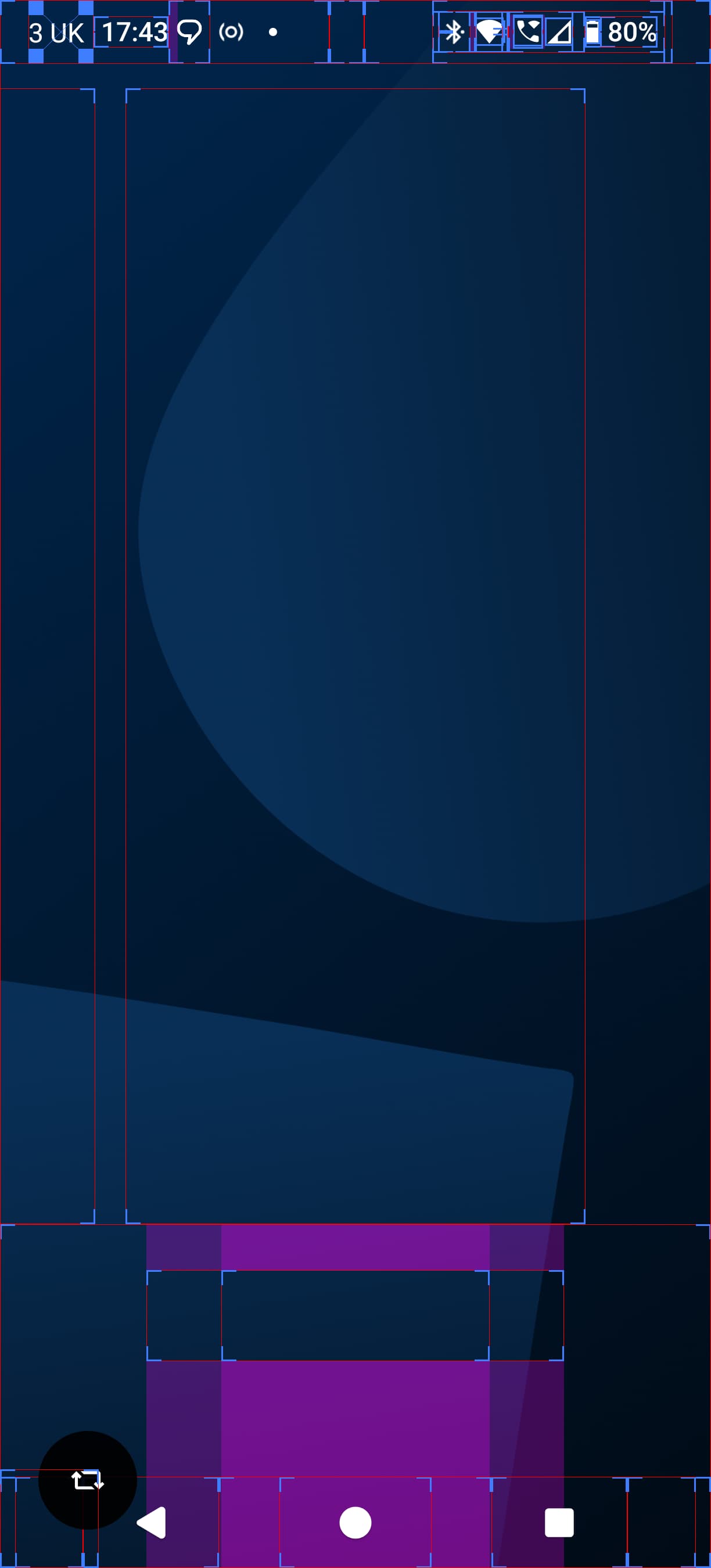Infrequently, when I input keyevent KEYCODE_BACK, [1] I see solely the default wallpaper. With setprop debug.layout true, [2] I am now able to see that it is rendering the selected activity. However, it’s rendering it invisibly:
