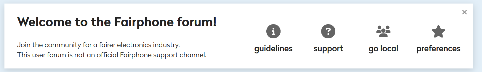 Fairphone does not see the forum as an official support channel and rather as a place for discussion amongst Fairphone owners and/or people interested in Fairphone.