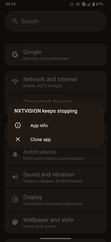 In fact it’s the visual enhancement item that causes the crash - and this time I managed to get a screenshot of NXTVISION app pop up - seems this is the issue?