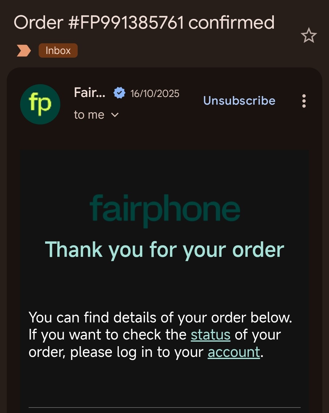 Fairphone 6 in Forest Green. Purchased this directly in October 2025, so it is only 3 months old.