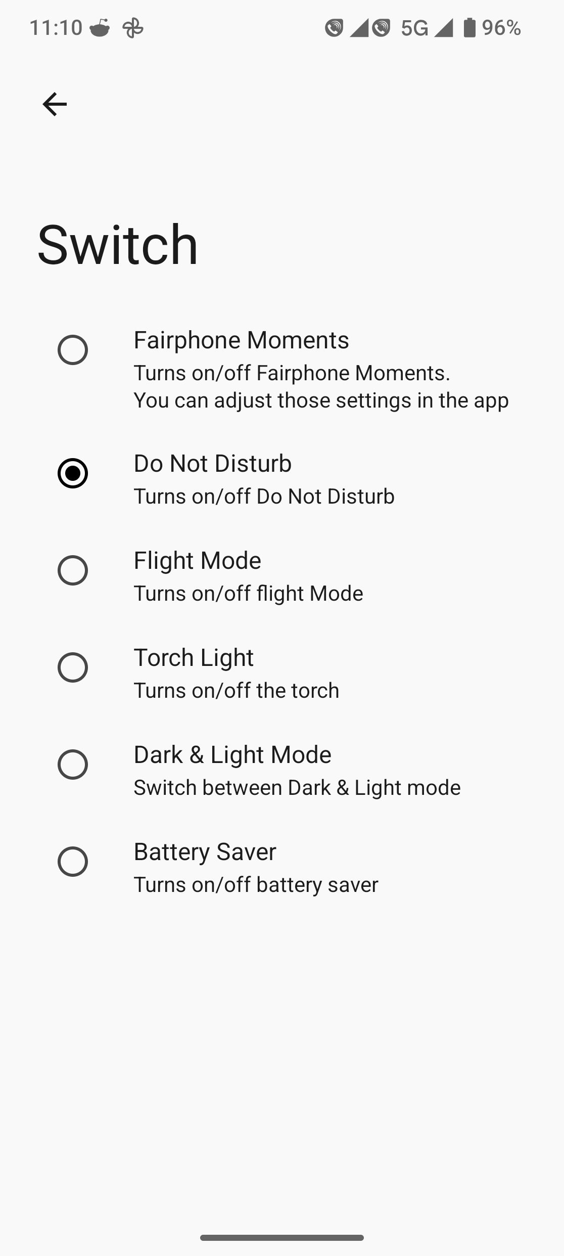 That’s actually a great option the Switch should have! I hope someone from Fairphone sees it and they add it. For now, you could just set the switch to work as a “Do not Disturb” switch. It would basically work the same way, unless you’ve customized the DnD mode.