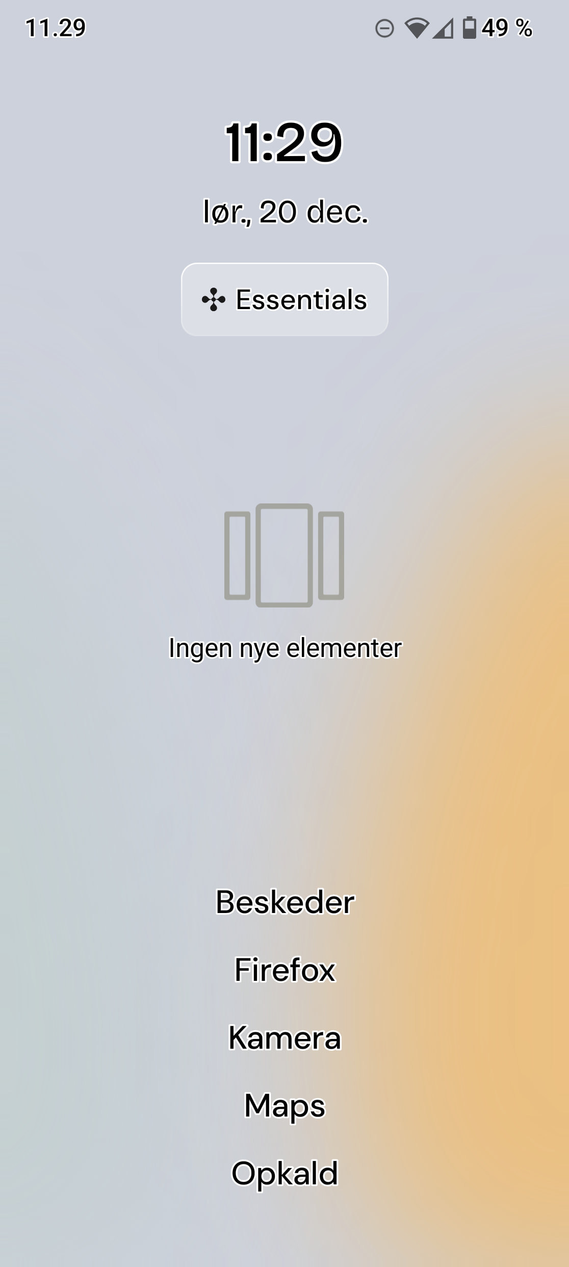 My start screen just changed, from my normal background with shortcuts to apps into one showing “essentials” and a brief list of most use apps (these short cuts don’t work) (cf. attached screenshot). The phone appears to work, I can access the settings, taking a screenshot, and sharing it. But I can’t access the apps… Anyone else experienced this? Any suggestions for solutions? I’d prefer not to do a ‘hard reset’ if possible. Best, Allan