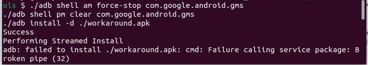 adb: failed to install ./workaround.apk: cmd: Failure calling service package: Broken pipe (32)