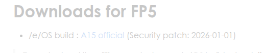 Thank you for all you r answers. From what you say I can safely conclude that I have involuntarily bricked my phone. I have flashed /e/OS 3.3 onto my phone. I have no idea how something like this can happen at all: I swear an oath that when I followed that link on the FP5 /e/OS install page (see screenshot obove) stating that what I would find was on SPL 2026-01-01 I found to .zip archives of /e/OS 3.3 with suspicious file names as for the SPL dates. I trusted the info on the preceding page, however, thinking that they know what they are doing.