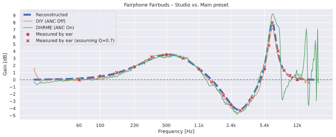Does anyone, perchance, know the technical parameters of the Fairbuds (v67) EQ profiles (i.e. frequencies, Q-values, gain)? There is a noticeable change in the audio that I cannot match by ear, even when matching volume across all the frequencies.