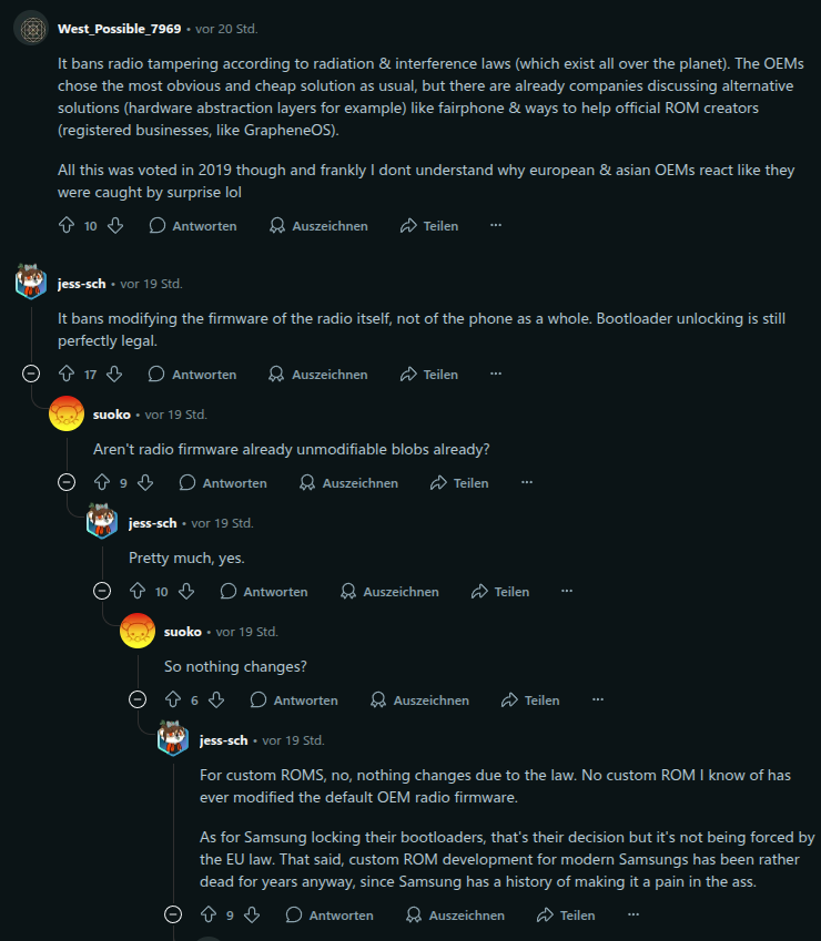 I used an LLM to “analyse” the law & red a few articles now. Everything confirms my suspicion, manufacturers can allow unlocks and therefore you can still install custom ROMs. However, it seems like that commercial software is either not allowed or must adhere to the same laws (5 years of security updates and all that), I am not entirely sure about that one.